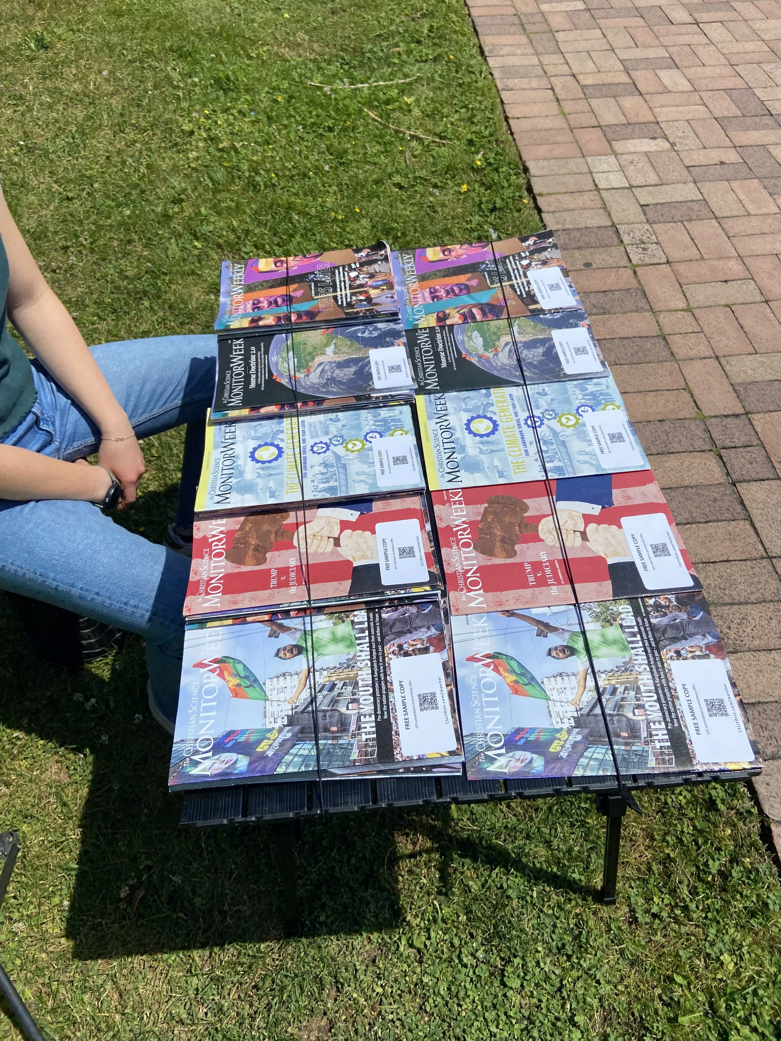 We set up a table near the Student Union Building and handed out a couple Christian Science Monitor Weekly's to about 3 students who stopped by. I noticed quite a few people glanced over, curious, but then quickly looked away and rushed off to their next classes. It’s interesting how busy campus life gets, and how fleeting those moments of curiosity are.
