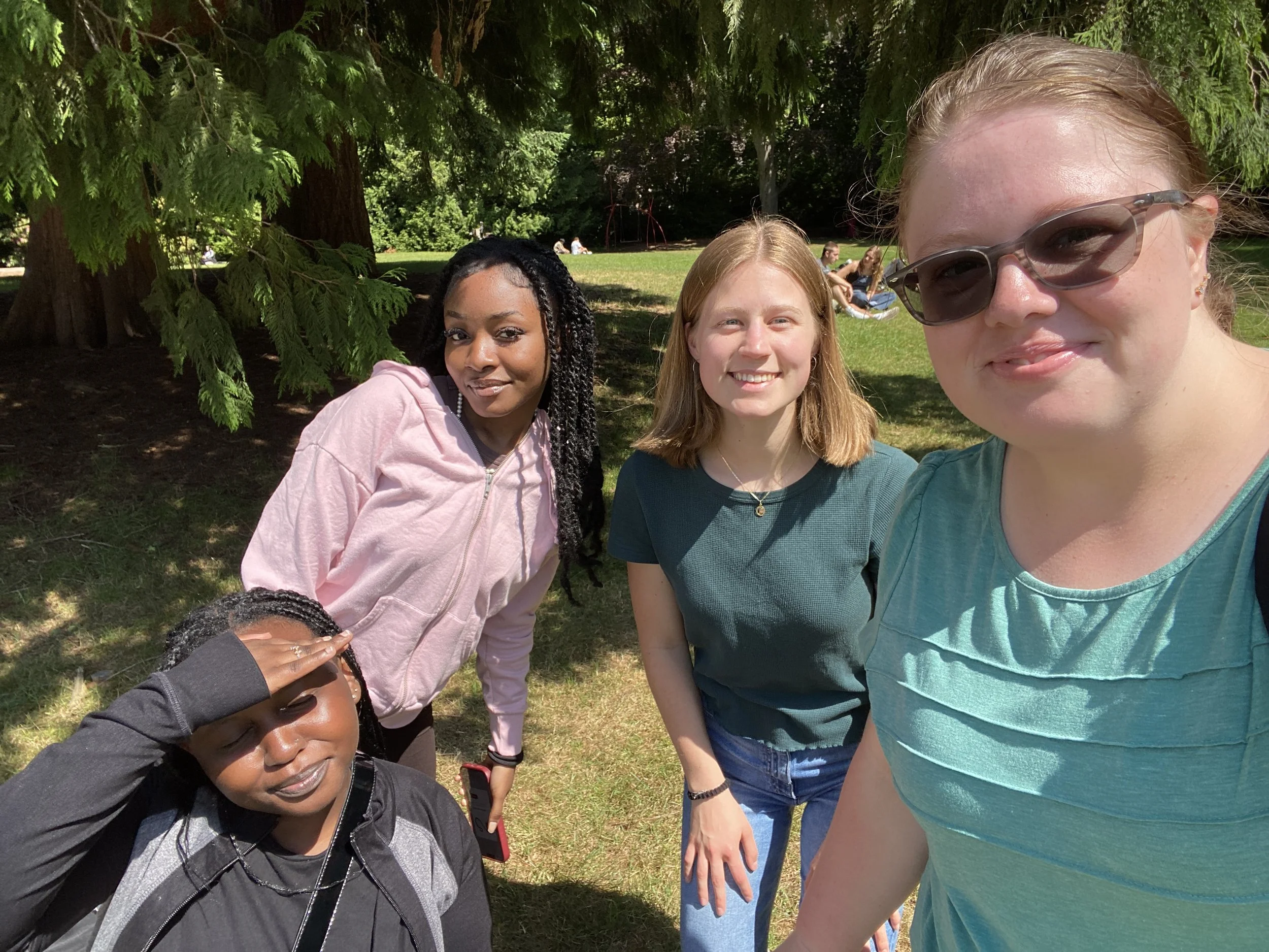 Frashia, Lusho, Ellie, and Acadia on UW Campus