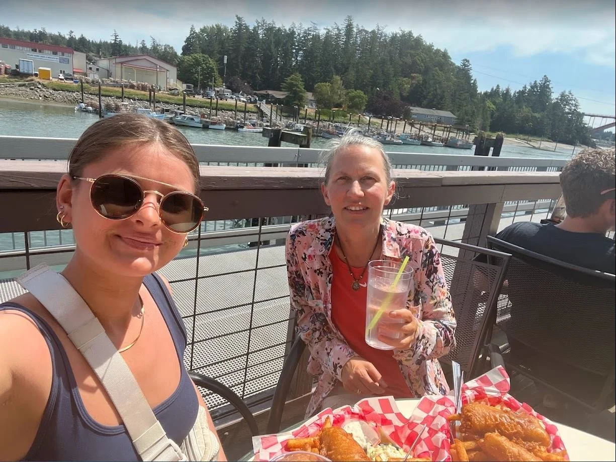 The Mount Vernon commercial area was pretty small in comparison to other outreach locations our team has visited, so it allowed for Cindy and Izzy to visit another area, La Conner, which is about a 20 minute drive West from Mount Vernon. Once Cindy and Izzy arrived in La Conner, they ate lunch at a restaurant that had a beautiful view of the river and marina from the outdoor patio — and great fish and chips. Just across a narrow canal from downtown La Conner is the Swinomish Tribe’s reservation, which has a small fishing and seafood operation.
