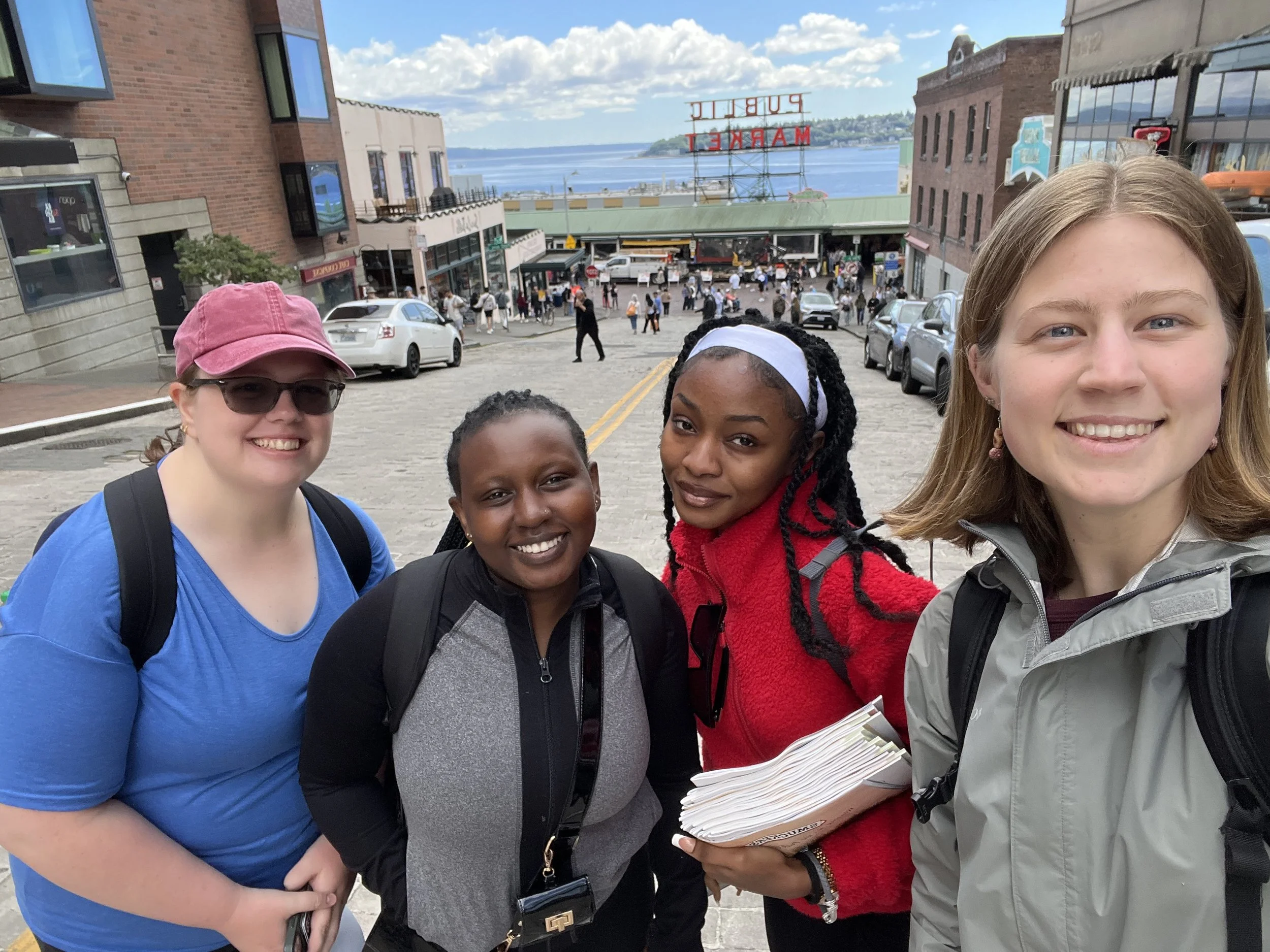 Today we were joined by the Reading Room interns from Third Church on an outing downtown to Pike Place Market and Belltown. We began our day at the Metro Christian Science Reading Room, gaining an understanding of how the team there interacts with visitors and creates a welcoming space for spiritual exploration. After lunch, we split into pairs and set out into the bustling market area to distribute The Christian Science Monitor Weekly. By the end of the afternoon, we had handed out around 130 copies, our highest number yet!