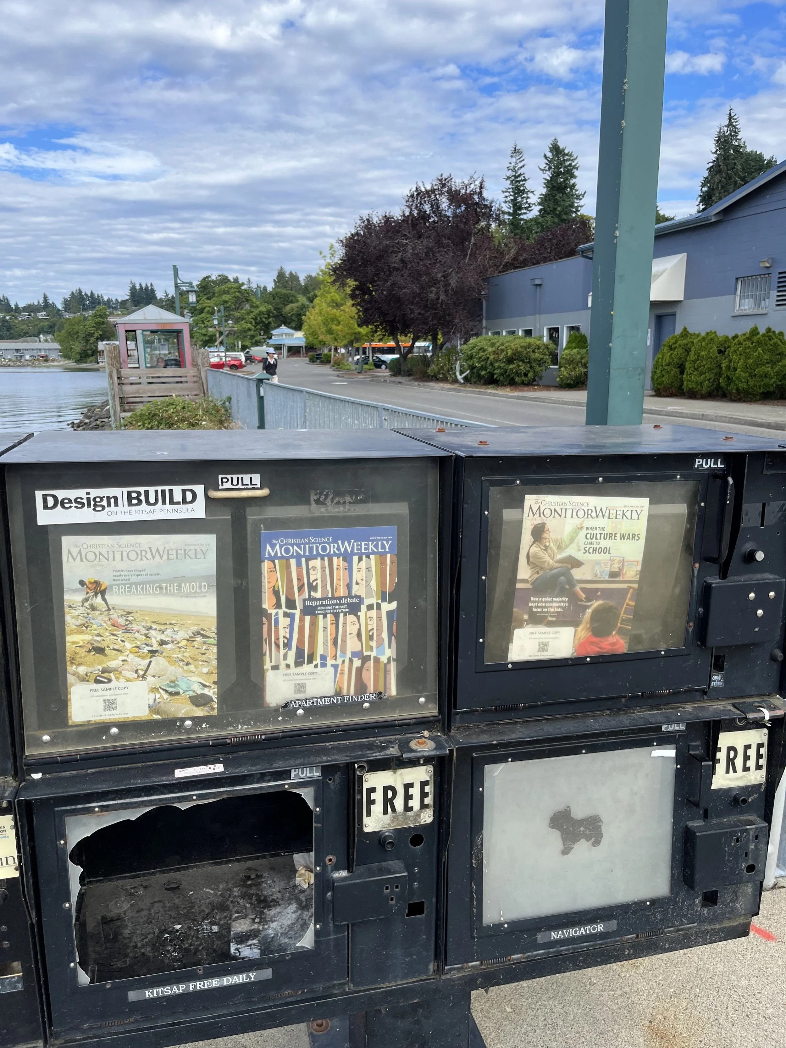 The local newspapers that once regularly filled these sidewalk stands are defunct. This is a great high-exposure spot for Monitors!